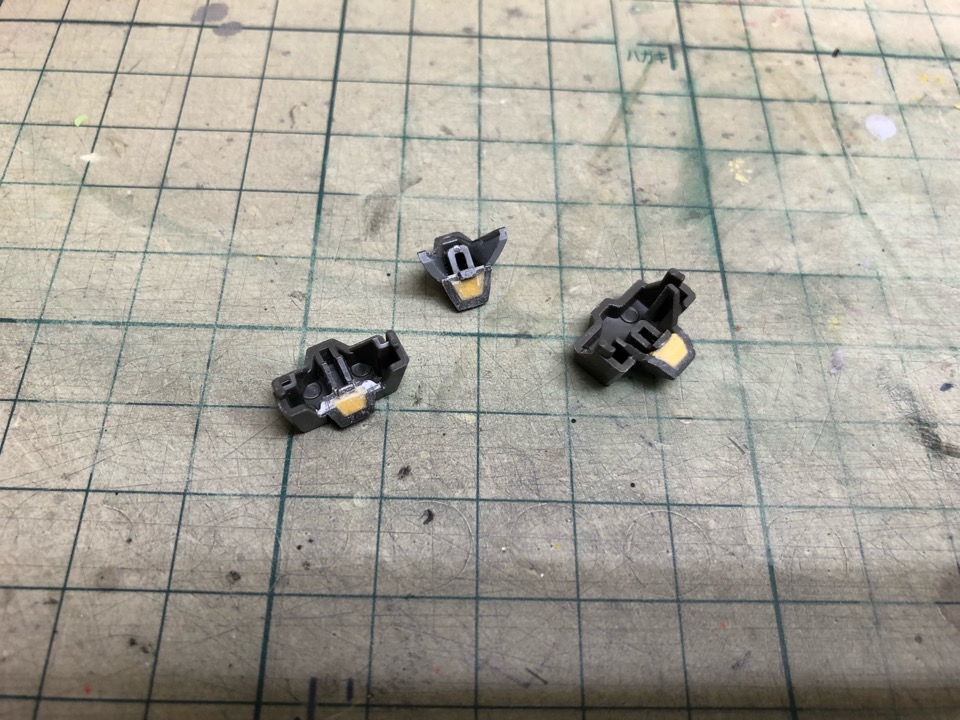 次にバイザーの後ろ側にもちょっとした肉抜きがあったので埋めてます。