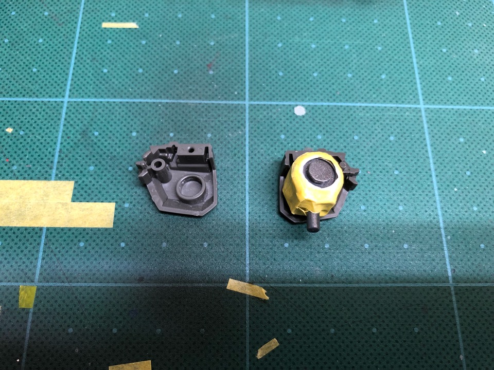 塗装、コーティングまでやっておいた肩関節をマスキングしてからアーマーを接着します。