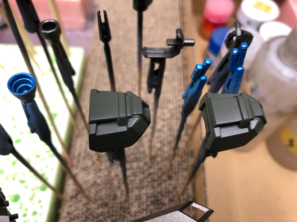 ついでに武装関係も合わせ目消し、基本塗装までは完了させてます。